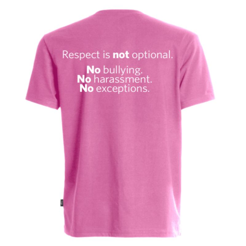Nous encourageons toutes et tous les membres à porter du rose et à faire front commun contre l'intimidation, le harcèlement et la discrimination. Porter du rose est une puissante façon d'exprimer sa solidarité et de rappeler que tout le monde mérite de se sentir en sécurité, respecté et inclus au travail comme au sein de nos collectivités.